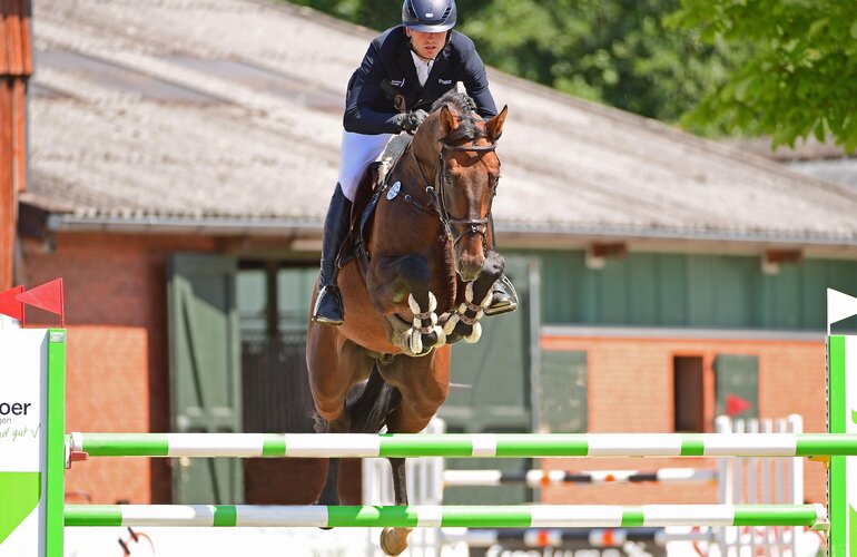 Und auch Mathies Rüder und Charaktervoll HV v. Comme il faut-Contendro I (Manfred von Allwörden, Grönwohld), Stamm 474A, konnten sich in der Qualifikation der Youngster-Tour (1,30 Meter), platzieren. Auf seinem zweiten gemeinsamen Turnier erreichte das Paar den sechsten Platz.