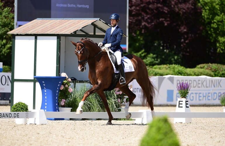 Bei den sechsjährigen Dressurpferden verteidigte die Vorjahressiegerin Elfensymphonie YD v. Vitalis-Fürstenball (Titelfoto) aus der Zucht von Caroline von Zele ihren Titel. Die Dunkelfuchsstute gewann bereits im vergangenen Jahr mit Markus von Holdt das Championat. Die Oldenburgerin siegte in der Dressurpferdeprüfungen der Klasse M, dem Preis von Andreas Bothe aus Hamburg, mit einer Gesamtnote von 8,26. Der Trab und die Durchlässigkeit wurden mit 8,5 am höchsten bewertet.