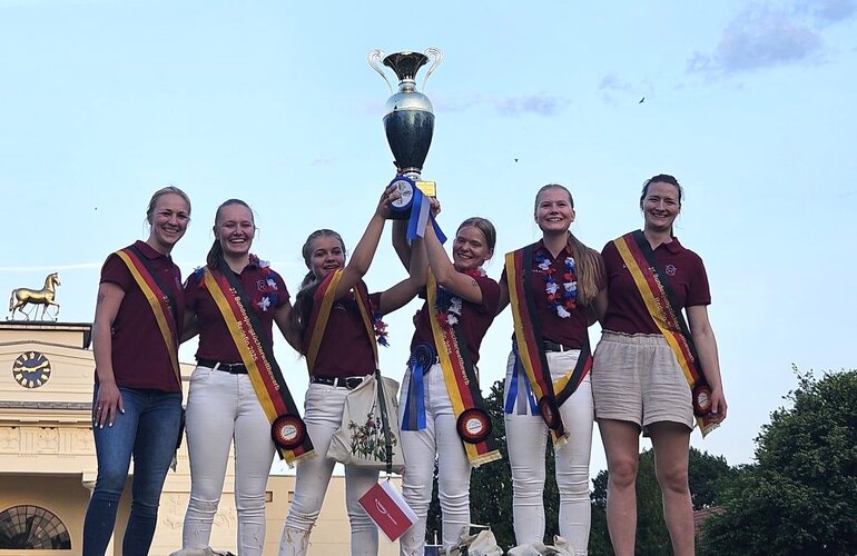 110 Jungzüchter aus ganz Deutschland bewiesen in den Disziplinen Theorie, lineare Beschreibung von Exterieur und Freispringen und dem Vormustern auf der Dreiecksbahn ihr Können und Wissen. Sieger in beiden Altersklassen waren die Holsteiner Teams, womit der Holsteiner Verband sich auch den Titel des Gesamtsiegers vor dem Pferdezuchtverband Brandenburg-Anhalt und dem Rheinischen Pferdestammbuch sichern konnte.