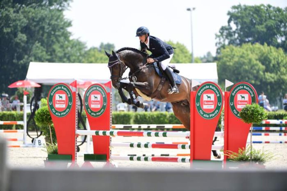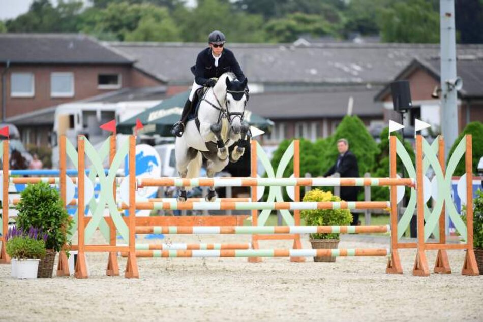 Die Siebenjährigen hatten ihre Qualifikation bereits am Donnerstag über M**. Mit gut zwei Sekunden Vorsprung siegte hier Chanio v. Carvallo BB (Foto unten, ZG Lüneburg) mit Sven Gero Hünicke im Sattel, vor Castle Creek v. Casall (Silke Zuba) unter Maximilian Gräfe vor Castor v. Casall (Johannes Hansen), den Christian Hess ebenfalls fehlerfrei durch den Parcours pilotierte.