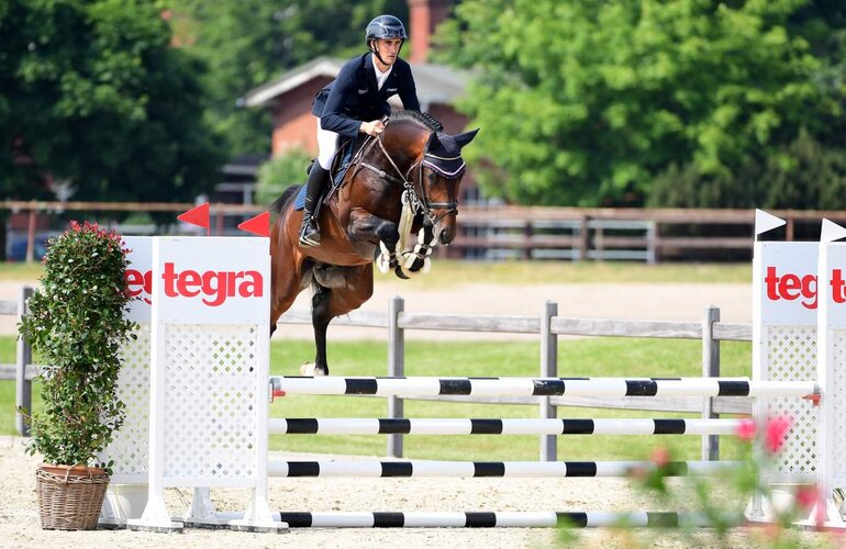 Die sechsjährigen Springpferde absolvierten eine Springpferdeprüfung der Klasse M*, die ebenfalls in zwei Abteilungen rangiert wurde. Mit einer 9,0 entschied Caillan v. Casall (Foto unten, Gerd Ohlsen) unter Antonia Selina Brinkop die erste und Crack v. Cornet Obolensky (Foto unten, Campos Cria de Caballos de Deporte) mit Maximilan Gräfe mit 8,8 die zweite Abteilung für sich.