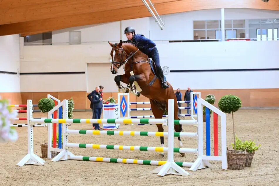 On 4 April, a two-hour training of the five- and six-year-old Verband stallions was broadcast through ClipMyHorse.TV. Having travelled to Elmhorn for this purpose, world champion Jos Lansink (NED) and Maximilian Gräfe, Teike Carstensen, Jesse Luther, Roberto Leva and Marten Witt demonstrated the training level of Corfu de la Vie, Chezarro, Keaton, United Way, Khatou-S and Crack. The video can be viewed for the entire month of April in the ClipMyHorse library.