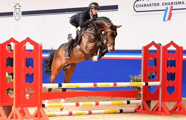 He excels with strength, pushing power, technique, carefulness, and the way he uses his hind legs when jumping. The dark bay has attractive markings and a very positive energy. A strong and compact top-line is characteristic for the four-year-old.