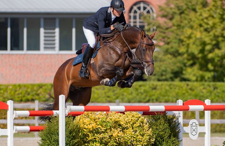 On Sunday, 28 May, there will be the opportunity to see the stallions hand-held on hard surface in the late afternoon. You are cordially invited to the breeders' meeting at the Holsteiner stand at the tournament site. On Monday, 29 May, the stallions will be shown in the short course directly before the Grand Prix under the saddle of Jens Klöppel and Lucas Deryckere (start around 2 p.m.).