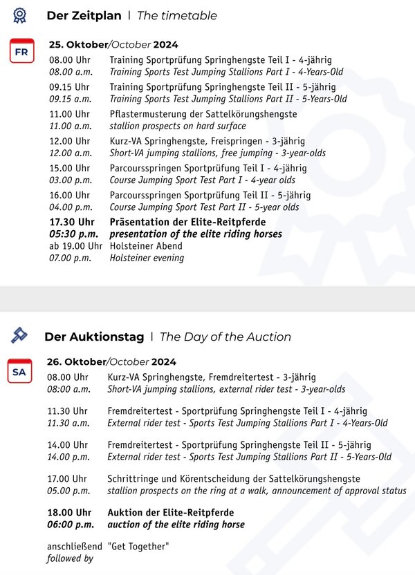 The get-together on Saturday evening is all about the sociable part of the weekend. DJ and electric violinist Vio Leen will provide the right mood. The collection of auction horses is online on www.holsteiner.auction . Do not hesitate to call Felix Flinzer for any questions about the auction horses (+49 162-3493942). The entire autumn event will be streamed live on ClipMyHorse.tv.