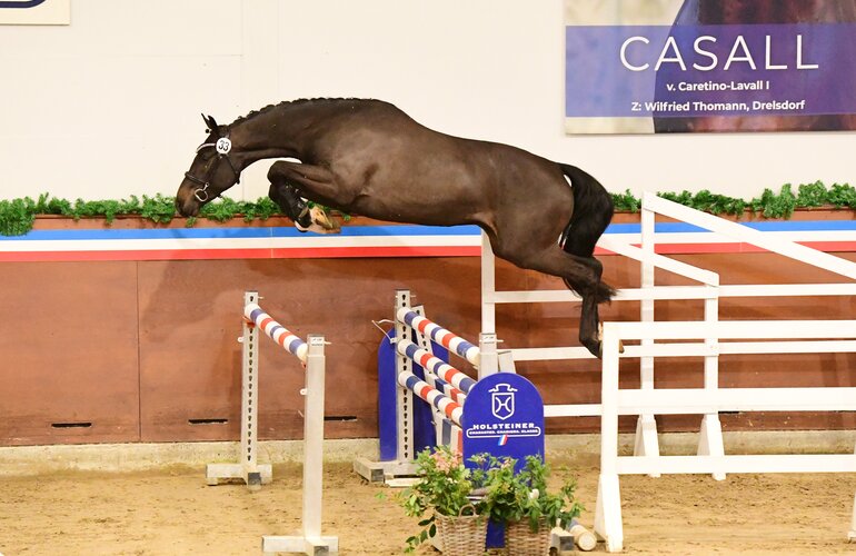 In the afternoon, the colts finally entered the Fritz-Thiedemann-indoor arena to present themselves in the “major Holsteiner discipline”, jumping, in front of a grandstand packed to capacity. The experienced free jumping team led by Alexandra Bitter gently and expertly accompanied the young talents, so that all horses had the opportunity to present themselves to best advantage. “Today, the colts were given the opportunity to find their feet in the spirit of horsemanship, with not too many jumps and moderate heights. We noticed favourably that many horses performed a very natural jump. Some of the young stallions have already recommended themselves for premium status, but we’ll take a closer look tomorrow“, Lars Nieberg summed up his first free jumping impressions. Anticipation is rising for the second free jumping scheduled for Saturday morning, starting at 8am.