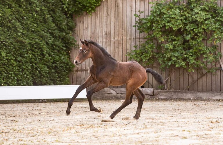 There is for example hip no 1, Chanero by Chubakko-Nekton: the produce of this colt’s direct dam line includes show jumpers with international placings like Licardo by Limbus (Marie Lunding Hansen/DEN), Crespo by Caretino (Remo Allgäuer/GER) or Lireu by Legolas (Niklaus Schurtenberger, SUI), all of them having collected results through 1.55m. The relatives’ performance of hip no 5, Champion by Clarimo-Casall, is not to be sneezed at, either: on the dam’s side for example Caruso by Calato Z (Andra Alessia Rossi/ITA) or Ben Maher’s Contigo by Calato Z can be mentioned, both of them shown at international 5* level. The eleven-strong foal lot’s first public presentation is scheduled for Saturday, 28 August at 1:30pm and can be viewed either on-site or live streamed via ClipMyHorse.tv. The auction is to begin on Saturday afternoon at 4:30pm, due to the hybrid format bids may also be placed on the phone or, upon prior registration, on holsteiner.auction.