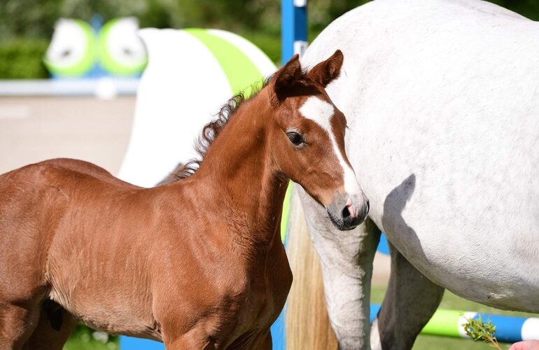 Having put together the lot along with the organizing team around horse show manager Stephan Johannsen, Holsteiner Verband executive director Roland Metz contentedly summed up the event: “I’m very happy our fist-time cooperation has proved such a success. The Springflut Festival is a valuable sporting event in Schleswig-Holstein“, Metz continued. “Many potential buyers from northern Germany, and thanks to the hybrid format from all over the world, have joined the event, either on-site in Hörup or else online.“ Hip no 6, Caesar by Clarimo-Colman, was knocked down at 15,000 euros to Lars Brunk from Schleswig-Holstein. In addition to his well-known sire the colt boasts a Holsteiner mare family with stud and sport merits (stem 318D2): the direct damline, bred for generations on the North Sea Island of Foehr, has produced a great number of championship contenders, including H&M Chilli Willi (Nicola Philippaerts), who died much before his time, Glock’s Cognac Champlanc (Gerco Schröder) or else Camiro (Tony Andre Hansen). The second top price was achieved by hip no 1, Chique by Cahil-Quibery, realizing 15,000 euros as well. The second dam of the filly from the Holsteiner mare family 890 by former champion stallion Cahil is a Colman daughter, Conella, who has produced not only the three licensed stallions Quabri, Uno I and Uno II, but also an Uriko offspring also called Uno currently successfully shown in the youngster tour at 1.40m level by Lena Glisic. Chique is to stay in Germany. Five of the nine foals were knocked down at at least 10,000 euros, resulting in an average of around 10,400 euros.