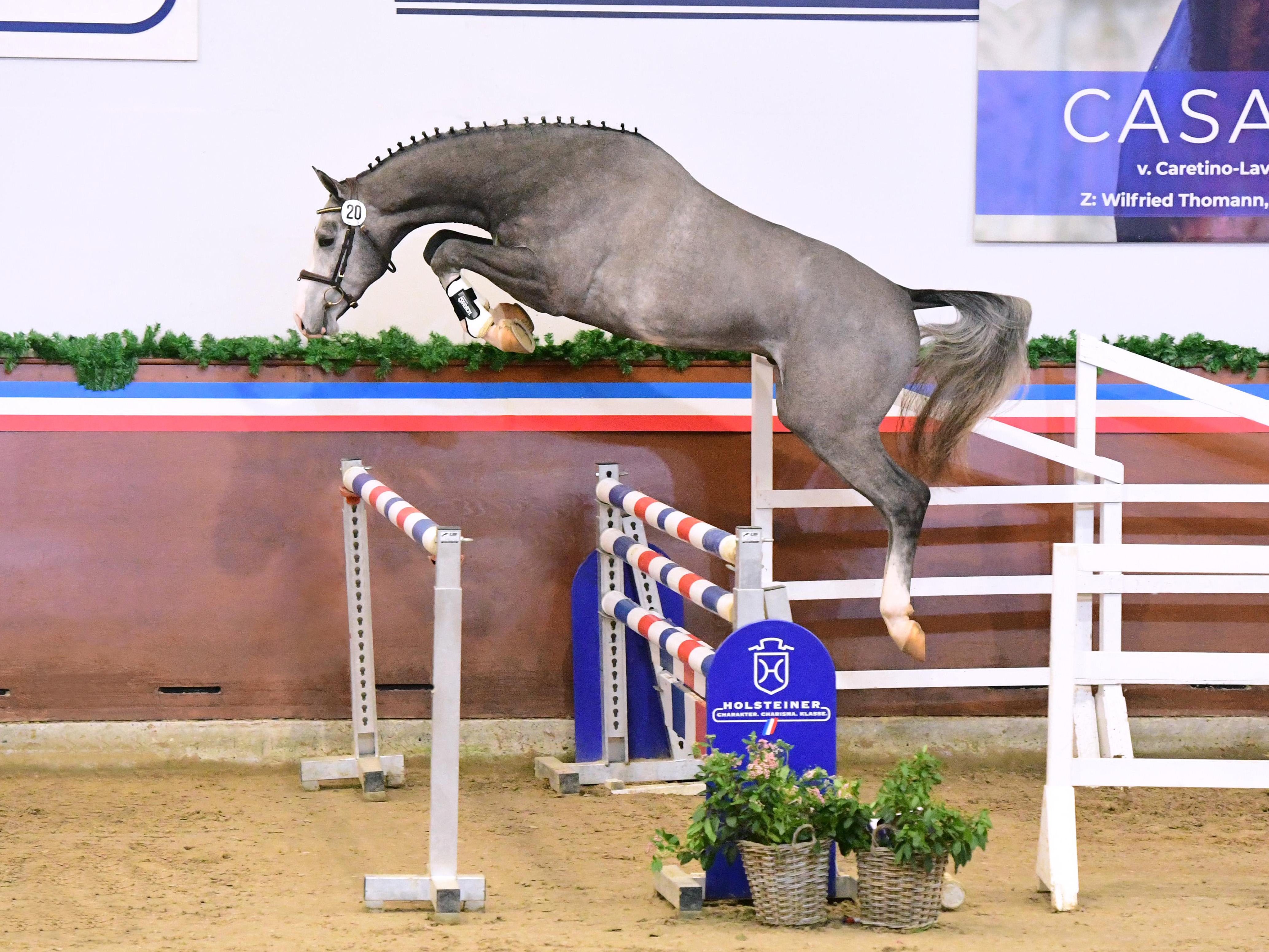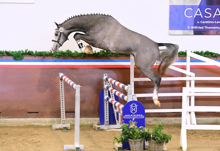 Er kam, sah und siegte. Conchezz avancierte bei der jüngsten Holsteiner Körveranstaltung zum umjubelten Siegerhengst. Bereits auf dem Pflaster wurde deutlich, dass der imposante und zugleich hochmoderne Schimmel zur Jahrgangsspitze gehört. Dies bestätigte er in der Freispringgasse auf ganzer Linie. Bereits deutlich im Hengsttyp stehend, zelebrierte er jeden seiner Auftritte mit seiner einnehmenden Erscheinung. „Mit Conchezz haben wir ein super modernes Springpferd mit großen Partien, viel Vermögen, auffälliger Präsenz und schnellen Reflexen gesehen. Ein Holsteiner Springpferd für den Sport“, beschrieb Zuchtleiter Stephan Haarhoff den gefeierten Siegerhengst und Publikumsliebling. Nun konnte die Holsteiner Verband Hengsthaltungs GmbH Conchezz durch weitsichtige Investoren für ihre Züchter sichern.