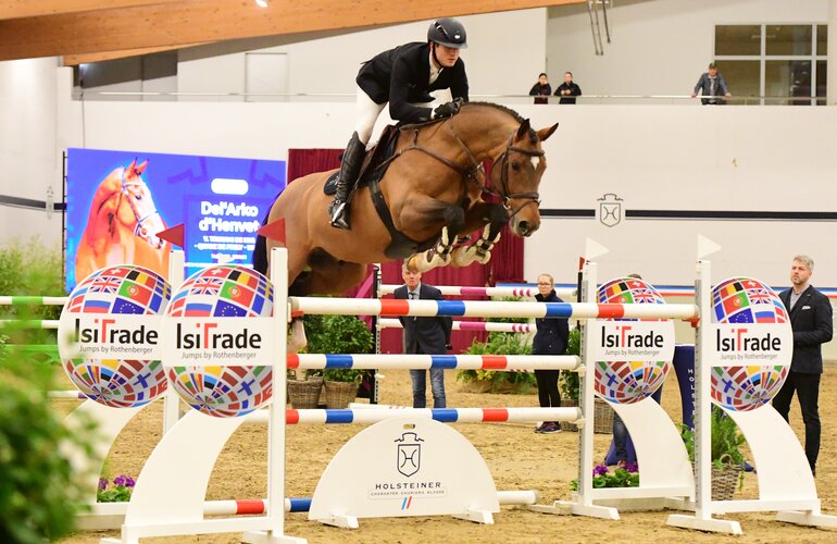 Jayke Junge und Lucas Wenz sind mit acht Verbandshengsten in den Holstenhallen von Neumünster zum Turnier: Am Donnerstag, den 8. Februar, starten Cahil v. Cornet Obolensky-Contender (Manfred von Allwörden, Grönwohld), Stamm 776, und Million’s Way v. Million Dollar-Concerto II (Holsteiner Verband Hengsthaltungs GmbH, Elmshorn), Stamm 1916, sowie United Way v. Uriko-Concerto II (Holsteiner Verband, Elmshorn), Stamm 1916, um 14:00 Uhr in einer Springprüfung der Klasse M*.