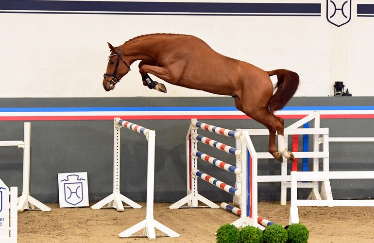 Der Holsteiner Verbandshengst wurde auf der westfälischen Körung 2021 entdeckt, wo er insbesondere durch sein beeindruckendes Vermögen, Kraft und Abdruck am Sprung auffiel. Hochinteressant stellt sich auch sein Pedigree dar: Sein Vater Nixon van’t Meulenhof zählt in Belgien zu den am meisten frequentierten jüngeren Hengsten, der mit Harrie Smolders vielbeachtete Auftritte zeigte. Nohovals Mutter war selbst im Sport erfolgreich, aus der Stutenfamilie gehen darüber hinaus unter anderem die 1,60 Meter-Springpferde Go Easy de Muze, Hocus Pocus de Muze und Iceman de Muze hervor. „Nohovals erste Nachkommen überzeugen auf ganzer Linie durch gute Oberlinien, kräftige Rücken und energischen Antritt“, sagt Geschäftsführer Sebastian Rohde.