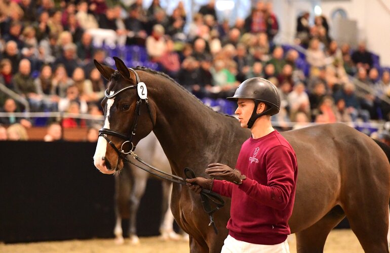 Freuen dürfen sich Besucherinnen und Besucher am Samstag auf den 2022 geborenen Reservesieger der Körung 2024, Attention Please. Dieser sportiv aufgemachte Sohn des Holsteiner Hengstes Acodetto - einer der Top-Vererber der Station Maas J. Hell - begeistert seinen Ausbilder Rafael Lopez Morales (ESP) jeden Tag mit seiner Arbeits- und Lernbereitschaft. Erstmals ist Attention Please am Samstag unter dem Sattel zu sehen.