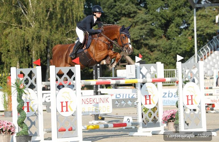 Im Rahmen der Landesmeisterschaft in Hannover haben die Hengste von Hengststation Völz außergewöhnliche Leistungen erbracht. In der Konkurrenz der Damen blieben der erst 8-jährige Diamant van Klapscheut Z (Diamant de Semilly/Cicero Z) und seine Reiterin Thea Jelcic an allen drei Tagen fehlerfrei und sicherten sich in dem schnellen Stechen die Bronzemedaille.