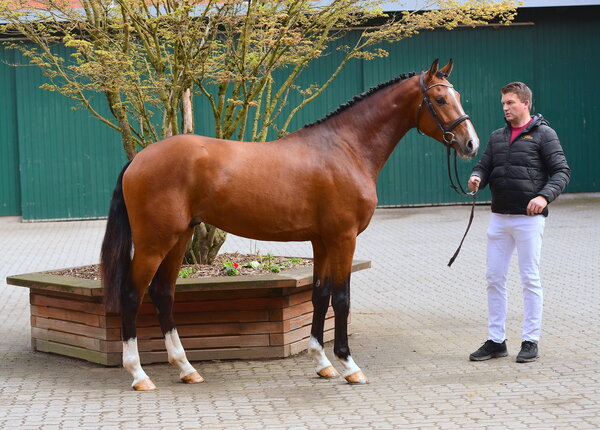 Die traditionelle April-Körung begann für alle Hengste mit der Musterung auf dem Pflaster, ehe sich die Dreijährigen in der Freispringreihe bewiesen. Im Anschluss wurden die Qualität der Grundgangarten sowie die Rittigkeit der Hengste des Jahrgangs 2020 unter dem Sattel geprüft. Auch für die dressurbetonten Anwärter stand eine Vorstellung unter dem Sattel an. Die älteren Hengste, die mit internationalen Erfolgen in schweren Springen aufwarten können, absolvierten einen Parcours.