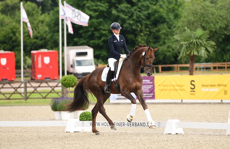 Zum ersten Mal überhaupt finden seit der Reformation des Hengstleistungsprüfungssystems Wertungsprüfungen für vier- bis sechsjährige Dressur- und Springvererber in Elmshorn statt. In einer Dressurpferdeprüfung der Klasse A* – zugleich HLP-Wertung für Vierjährige – siegte F-Dur v. Floriscount-Feedback, der im Besitz des Niedersächsischen Landgestüts Celle steht, mit einer Wertnote von 8,3 und Catja Thomsen im Sattel. Auch bei den fünfjährigen Hengsten lief es rund für die Celler Landbeschäler: Hier gewann der Revolution-Damon Hill-Sohn Rocky Mountain unter dem Sattel von Saskia Sophie Kunz und der Wertnote 8,2. Eldorado v. Escamillo-Floriscount bekam die Siegerschleife bei den Sechsjährigen angesteckt. Der Westfale aus dem Besitz von Hans Peter Mohr wurde von Sophie Ludewig in Szene gesetzt und erhielt eine 8,14 für seine Vorstellung.
