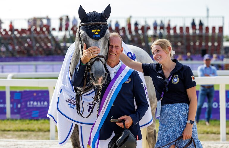 Auf Rang elf platzierte sich der elfjährige Zuccero v. Zirroco Blue-Caretino (Hanno Köhncke, Badendorf), der sein erstes internationales Championat bestritt. Und zwar für Schweden mit Rolf-Göran Bengtsson im Sattel. Bereits am Freitag durfte sich das Paar über die Goldmedaille mit der Mannschaft freuen. Direkt dahinter platzierte sich Cinca v. Casall-Carthago mit Michael Duffy (IRL) auf dem zwölften Rang im Gesamtklassement. Aber auch dieses Paar nimmt Edelmetall mit nach Hause. Nämlich Silber aus der Teamwertung. Auf Platz 15 im Einzel folgte Tornado VS v. Toulon-Contender (Vanessa Schockemöhle, Mühlen) unter Armando Traporte (ESP), Long John Silver v. Lasino-Corrado I (Peter Burmester, Wangels) und Jur Vrieling (NED) kamen auf Platz 18. Ebenfalls qualifiziert für das Finale – allerdings traten sie nicht mehr an – waren Jana Wargers und ihr bewährter Limbridge v. Limbus-Cambridge (Ralf Pawlowski, Heidenheim) auf Platz 21.