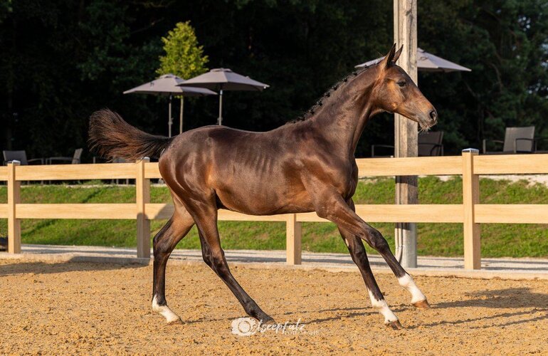 Das siegreiche Hengstfohlen v. Dark Dominator-Argentinus wurde von Josef Hänle (Mietingen) gezogen. Aus der Familie der in Zangersheide eingetragenen Mutter gehen bereits 1,45 Meter-Sportpferde wie Quidams Rubenbos S v. Quidam’s Rubin hervor.