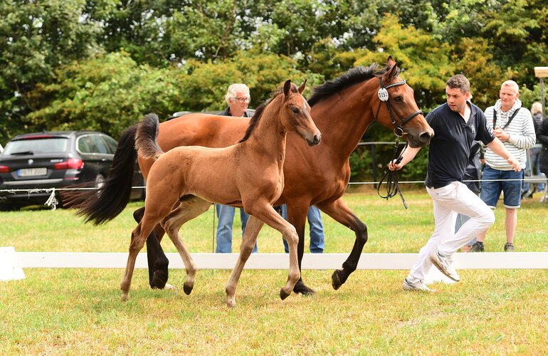 Außerdem haben sich das zweiplatzierte Stutfohlen v. Karlo de Kalvarie-Diarado (Claus-Heinrich Petersen, Ahrenviöl), Stamm 6786, sowie das auf Rang 3 platzierte Fohlen v. Duplex-Casall (Wenke Andresen, Achtrup), Stamm 1866, qualifiziert.
