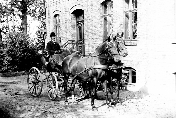 Georg Ahsbahs mit seinem Zweispänner um 1900