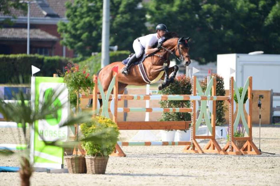 Die sechsjährigen Springpferde absolvierten eine Springpferdeprüfung der Klasse M*, die ebenfalls in zwei Abteilungen rangiert wurde. Mit einer 9,0 entschied Caillan v. Casall (Foto unten, Gerd Ohlsen) unter Antonia Selina Brinkop die erste und Crack v. Cornet Obolensky (Foto unten, Campos Cria de Caballos de Deporte) mit Maximilan Gräfe mit 8,8 die zweite Abteilung für sich.