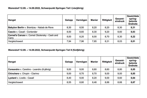 Außerdem beendete der Livello-Casall-Sohn Lyotard (Dr. Antonio Conde, Wöhrden) den Sporttest mit der Endnote von 8,64 im deutlich guten Bereich.