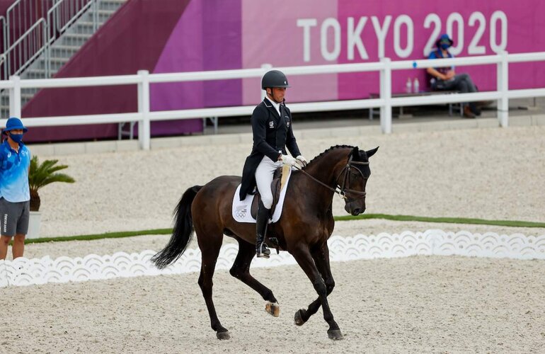 Bester Holsteiner ist derzeit – auf Platz fünf – der Contender-Heraldik xx-Sohn Vitali aus der Zucht von Günther Fielmann (Schierensee), der mit seinem Reiter Tim Price die Farben Neuseelands vertritt und mit der Mannschaft auf Rang drei vor dem Gelände liegt. 74,39 Prozent erreichte das Paar. Ihnen dicht auf den Fersen (74,24 Prozent) auf Platz sechs ist der zweitbeste Holsteiner – nämlich London v. Landos-Quinar aus der Zucht von Ocke Riewerts (Alkersum). Gemeinsam mit der Britin Laura Collett gehört der Fünf-Sterne-Sieger zur führenden Mannschaft aus Groß Britannien. Mit 71,69 Prozent rangiert die in Schleswig-Holstein beheimatete Schwedin Louise Romeike mit ihrem Holsteiner Cato (ZG Judith und Sönke Schmidt, Naumburg), der von Contendro I und Heraldik xx abstammt, auf dem neunten Platz. Nur knapp verpasst haben die 70er-Marke mit 69,92 Prozent Diachello v. Diarado-Chello I (Thomas Visser, Dentlein am Forst) und der Neuseeländer Jesse Campell. Das Paar, das mit dem Team das Klassement derzeit anführt, erreichte mit seiner Dressurrunde einen beachtlichen 15 Platz.