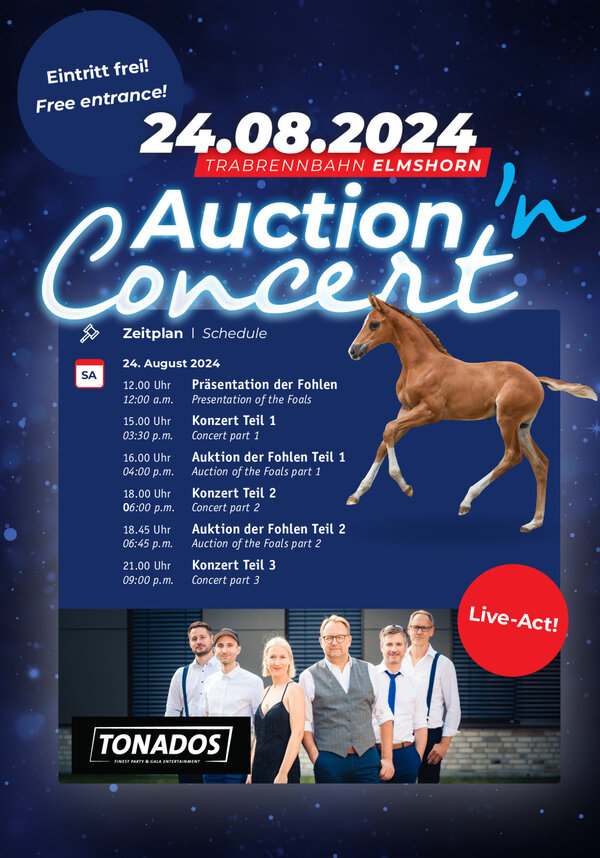 Am heutigen Samstag, den 24. August, werden ab 16:00 Uhr die Holsteiner Elite-Fohlen in einer Hybrid-Auktiion neuen Besitzern zugeschlagen.