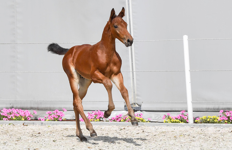 Und diese Kollektion wird man sicherlich in Zukunft bei den Bundeschampionaten und auf internationalen Turnierplätzen im Einsatz wiedersehen: Die Katalognummer 1 zum Beispiel, Stine v. Chacfly PS-Barcley, entspringt der direkten Mutterlinie des Cassini I. Die Katalognummer 4 trägt den Namen My Moonlight und stammt ab v. Mylord Carthago-Chacco Blue. Und seine Mutter ist eine Halbschwester von Tobago v. Tangelo van de Zuuthoeve, der mit Daniel Deusser (GER) unter anderem Zweiter in Aachen war. In Aachen, Spruce Meadows und auf vielen weiteren renommierten Plätzen dieser Welt war auch L.B. Convall v. Colman hocherfolgreich mit Philipp Weishaupt (GER) unterwegs. Aus dessen Familie geht die Katalognummer 24 hervor, Escamina v. Eldorado van de Zeshoek-Colman. Mit hervorragender Eigenleistung auf der Mutterseite punktet die Katalognummer 5, Cierano v. Cieran-Cormint: Seine Großmutter ist die mehrfache Weltcup-Siegerin Deichgräfin v. Constant (Carsten-Otto Nagel/GER). Aus in der Vielseitigkeit hochdekorierten Familien stammen zum Beispiel die Katalognummern 17 und 22: Cross Country TH v. Casall-Quinar hat Waikiki zur Mutter, mit der Louise Romeike für Schweden sportliche Meriten sammelte, unter anderem bei den Weltmeisterschaften. Auch ihr Badminton-Pferd Wieloch’s Utah Sun v. Limbus stammt aus diesem Zweig. Mit Captain Jack H v. Connor-Contender bereichert ein direkter Verwandter von Nickel v. Numero Uno das Lot. Der Wallach eroberte mit Julia Krajewski im Sattel bei den Olympischen Spielen in Paris nicht nur die Herzen der Vielseitigkeitsfans, sondern schloss bei seinem Debüt auf Einzelplatz elf ab. Etablierte Stutenstämme mit internationaler Genetik – die Familien de Muze und van’t Roosakker – vertreten ebenso mehrere Offerten und runden „Tomorrow’s Champions by Holsteiner ab“: Zum Beispiel die Katalognummer 3, Movento AMK v. Eldorado van de Zeshoek-Emerald van het Ruytershof, hat die mit Harrie Smolders im 1,60 Meter-Parcours erfolgreiche Walnut de Muze zur Großmutter. Diese ist wiederum keine Geringere als die Vollschwester der Urgroßmutter des Shooting Stars Million Dollar und kaum zählbaren weiteren Top-Sportlern.