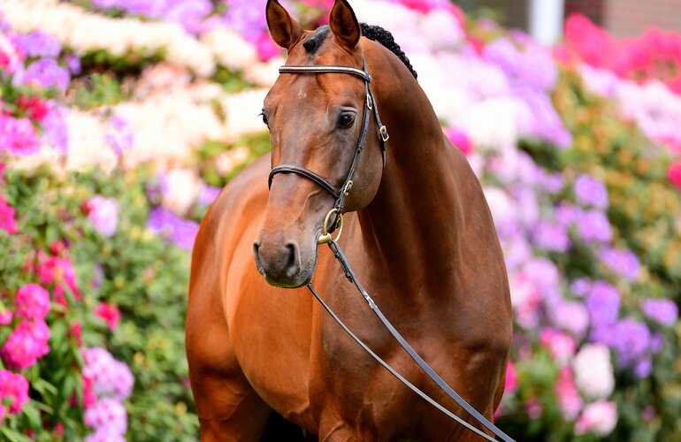 Corfu completed 14-day ability assessment in Schlieckau with an overall weighted mark of 7.83. In 2021, he received the final jumping weighted mark 8.36 in the sport performance test for five-year-old stallions, scoring 9.0 on rideability and 8.7 on ability. Corfu’s first showing season in 2020 resulted in top finishes in young horse jumping classes at 1.15m level, including fifth place at the four year-old jumping horse State Championship at Elmshorn. Five- and six-year-old, Corfu was placed in several young horse jumping classes up to 1.30m level.