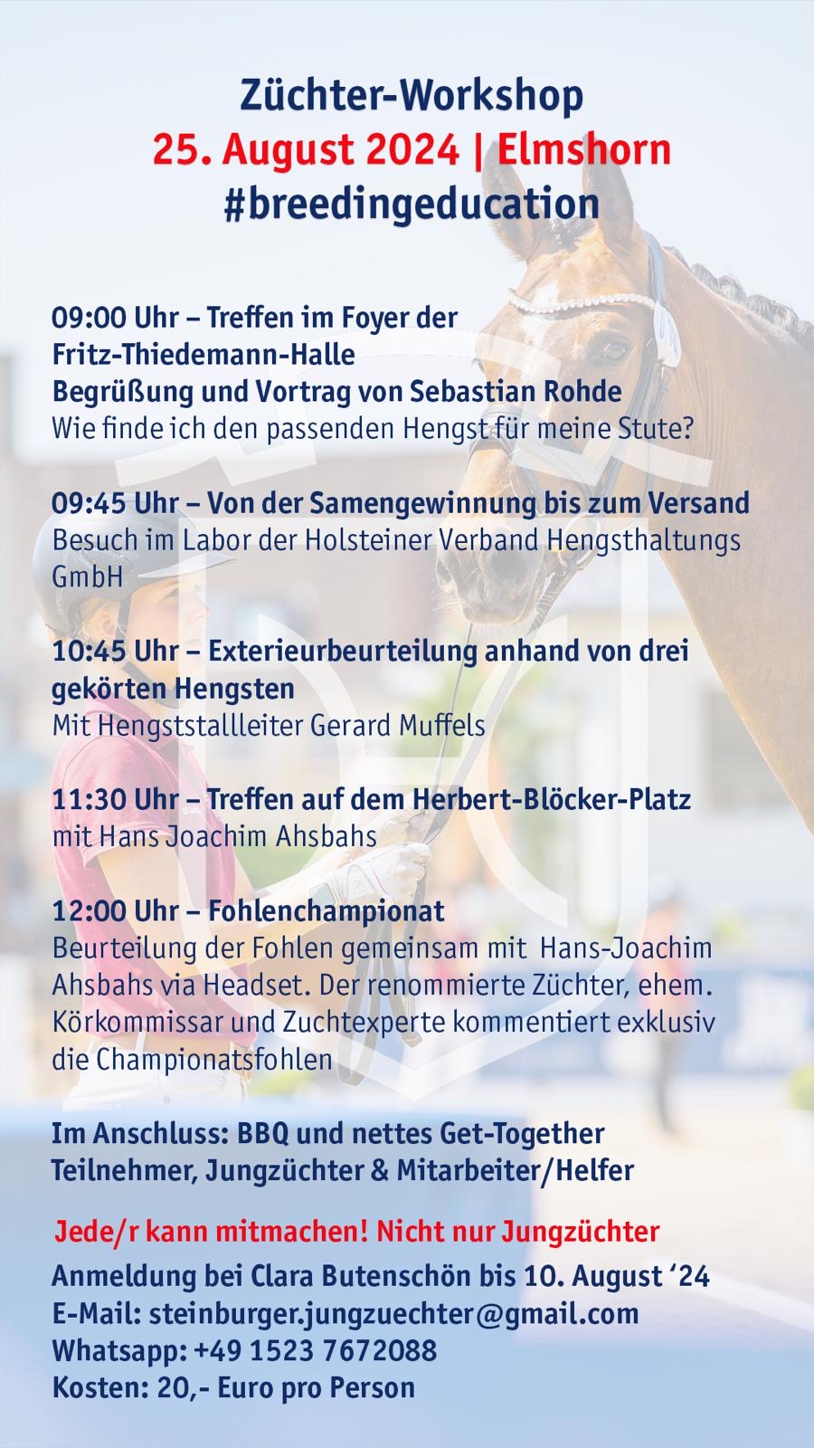 Registrations for the breeders' workshop are still possible until 10 August by contacting Clara Butenschön (e-mail: steinburger.jungzuechter@gmail.com). The cost is 20 euros per person.